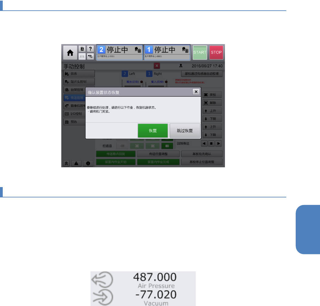 要操作贴片头使之移动到退避位置时,必须恢复装置状态。此时将显示对话框,以确认是进行恢复动作使