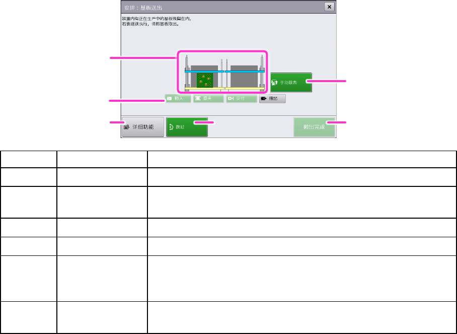 搬出完成 关闭对话框,进入下一安排工序。如果本机内有基板残留,将再次