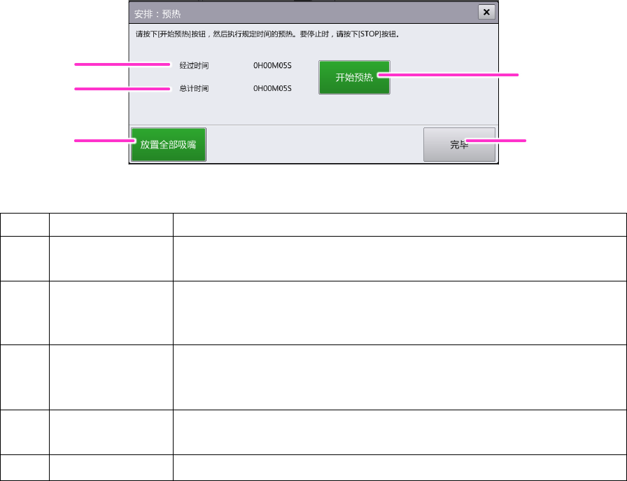 完毕 触摸此按钮,预热工程即完毕,进入到下一安排工程。
