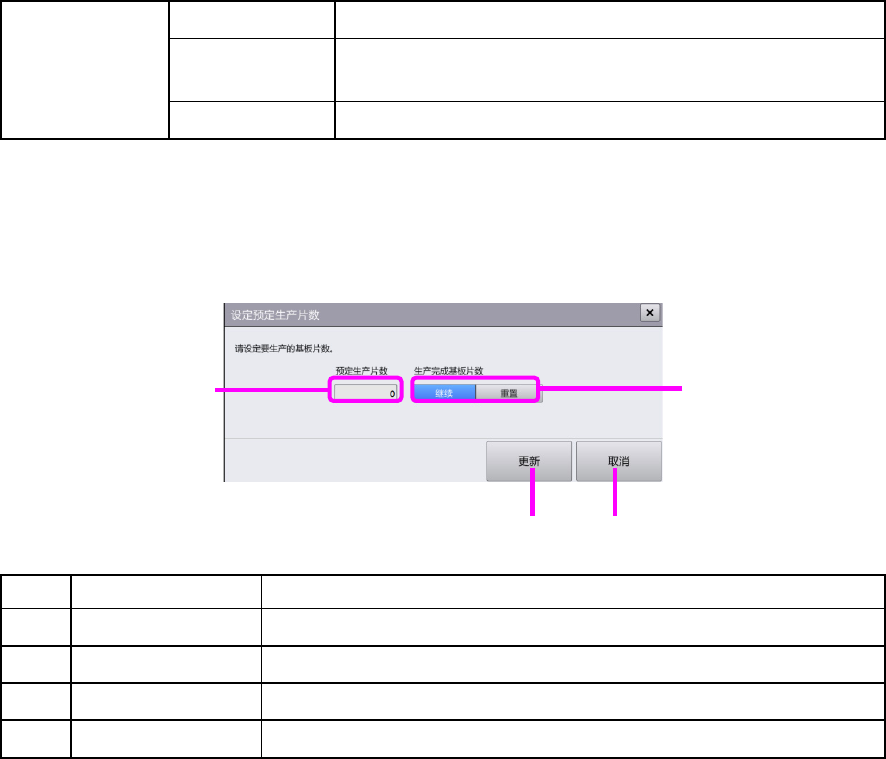 更新 更改生产预定片数及生产完成基板片数,关闭对话框。