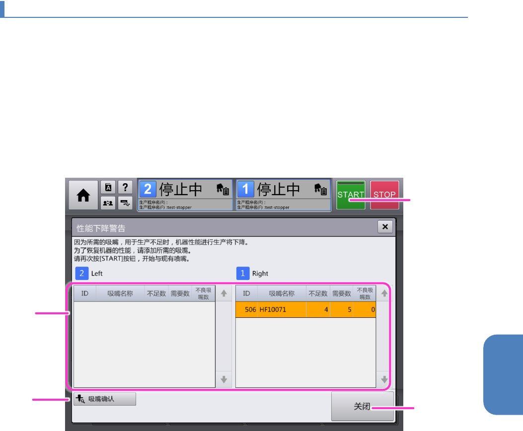 是如果必要的吸嘴为 0 个时,将会在生产开始时显示警告画面,无法开始生
