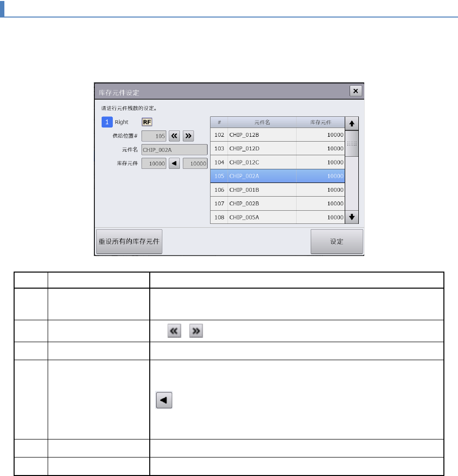 库存元件 显示[供给位置#]中选择的供给部库存元件。