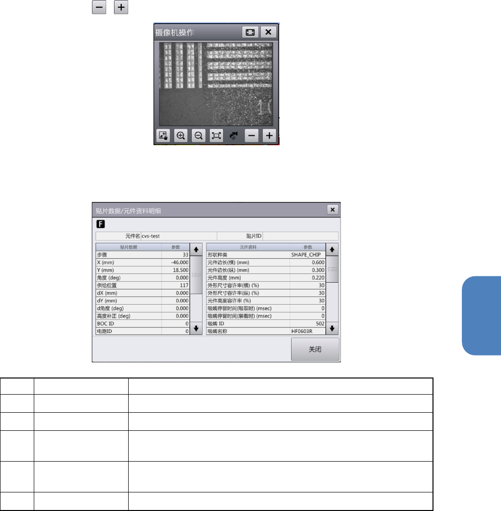 摄像机移动 将摄像机移动到贴片数据列表中选择的步骤贴片位置,显示图像。