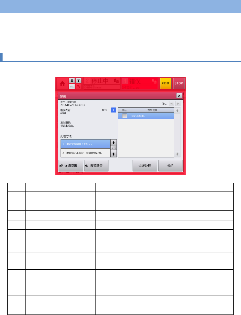 错误处理 关闭[警报]对话框,显示警报的处理画面。
