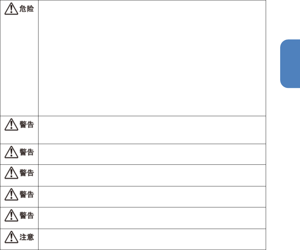 第 1 章 安全注意事项 1- 1. 安全操作预防措施 6 激光使用注意事项 本机使用激光等级为 2 的激光机器。使用时,请严守以 下事项。 • 切勿直视激光束。长时间直视激光会 损害视力。 • 请勿拆解。拆解后激光会泄漏,可能 损害视力。 • 如果发生故障,请勿拆解修理,而应 更换装置。