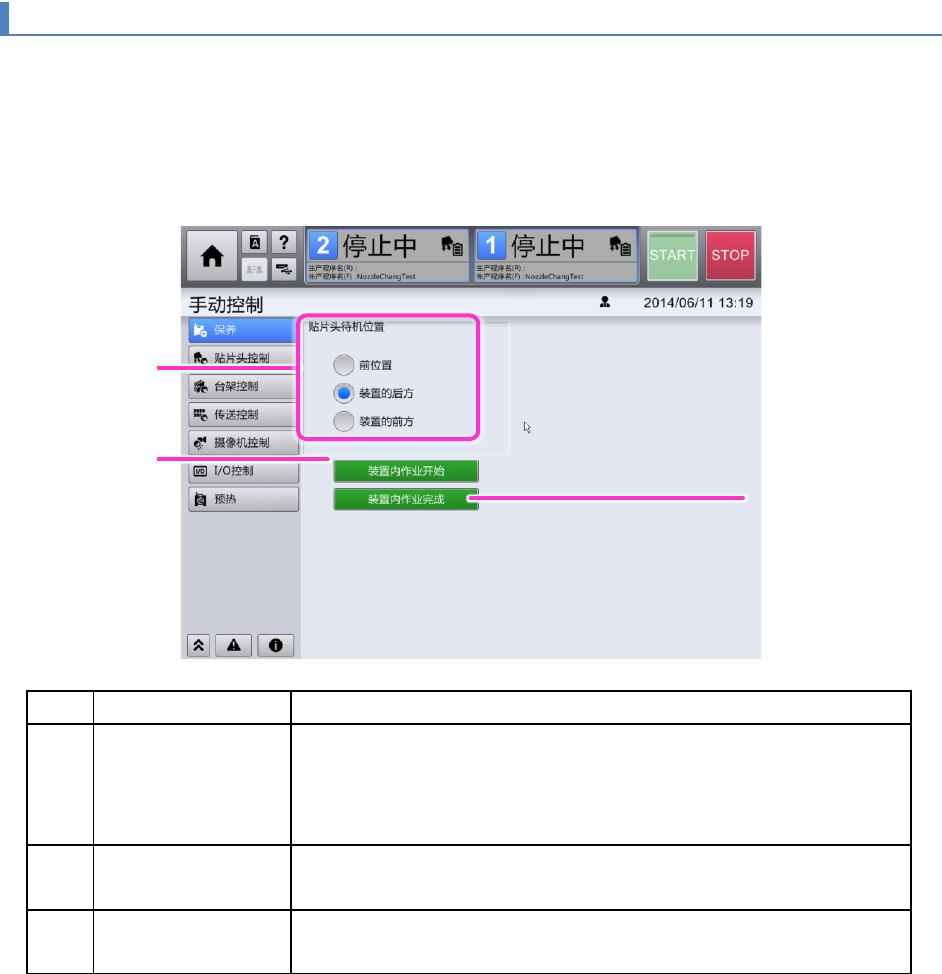 装置内作业开始 作业员将手伸入装置内作业时,要触摸此项。