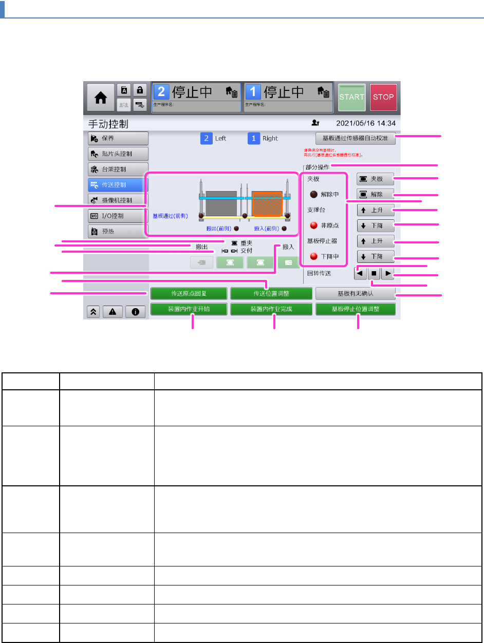 传送单元图像 显示本机内的传送状态及基板的位置。