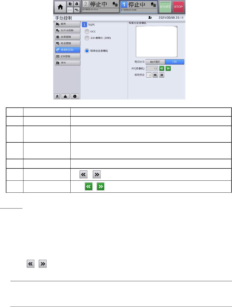 显示选择的摄像机的图像,亮灯时间,照明层级的调整按钮。
