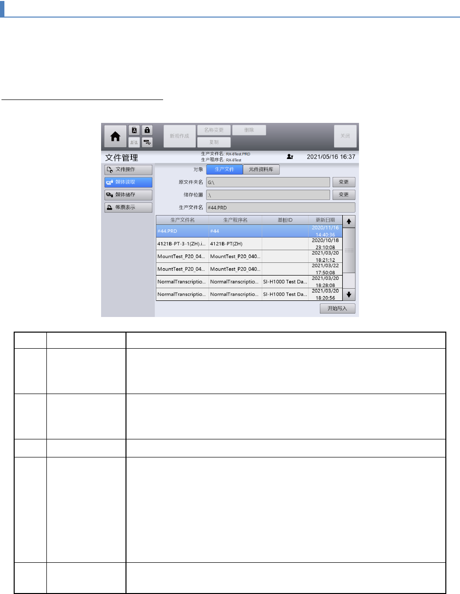 媒体读取画面的操作(生产文件)