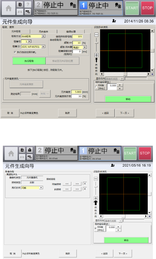 [自动生成]选项卡,可在[吸取、废弃]画面中吸取元件时,自动从摄像机图像制作脚元件的识别数据。