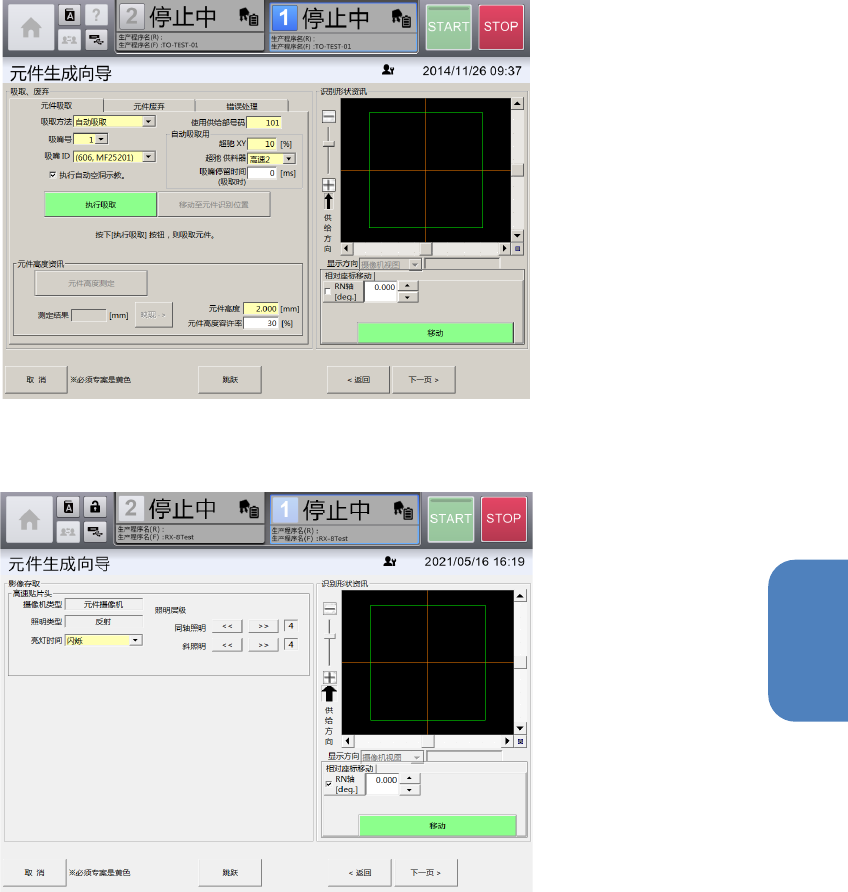 [自动生成]选项卡,可在[吸取、废弃]画面中吸取有元件时,自动从摄像机图像制作脚元件的识别数