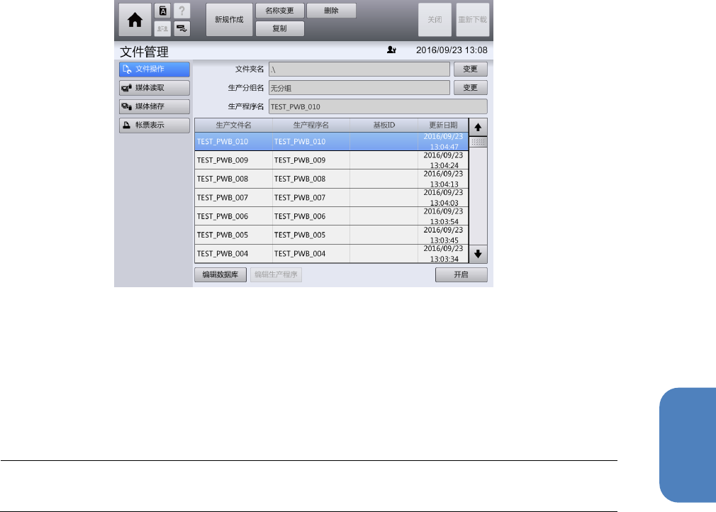 关闭[选择生产分组]对话框,显示[文件操作]画面。