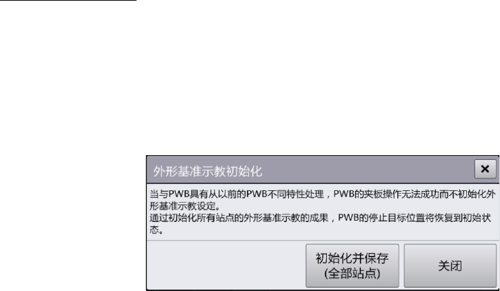 前次示教的基板为缺口基板时,要按[恢复初始状态] 按钮显示 [外形基准示教初始化] 对话框,按[初