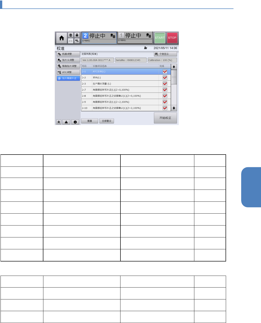 在[ATC 调整]画面中,可对本机的贴片头进行相关的校准。