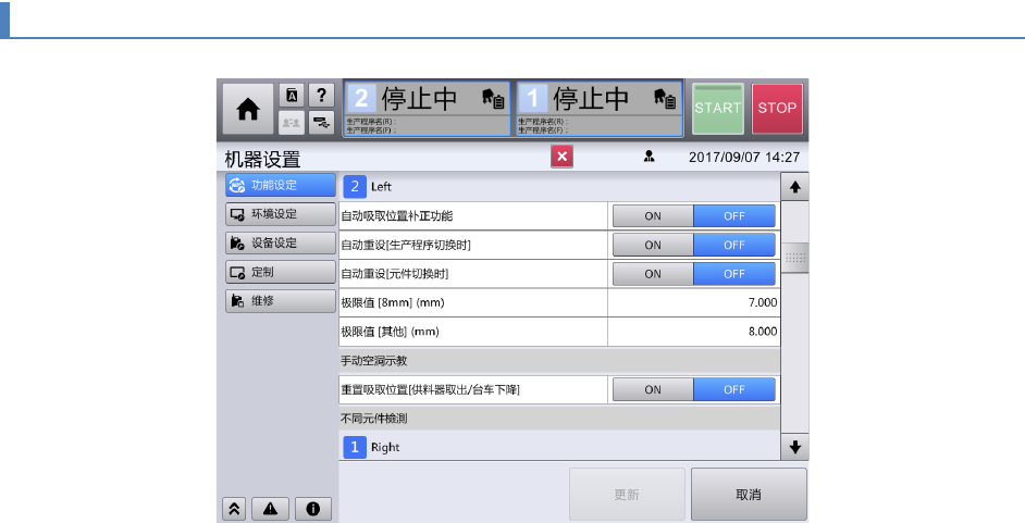 设定为 ON 时,若实施元件核对操作及元件更换作业,将重设该供料器的自动吸取位置补正值。