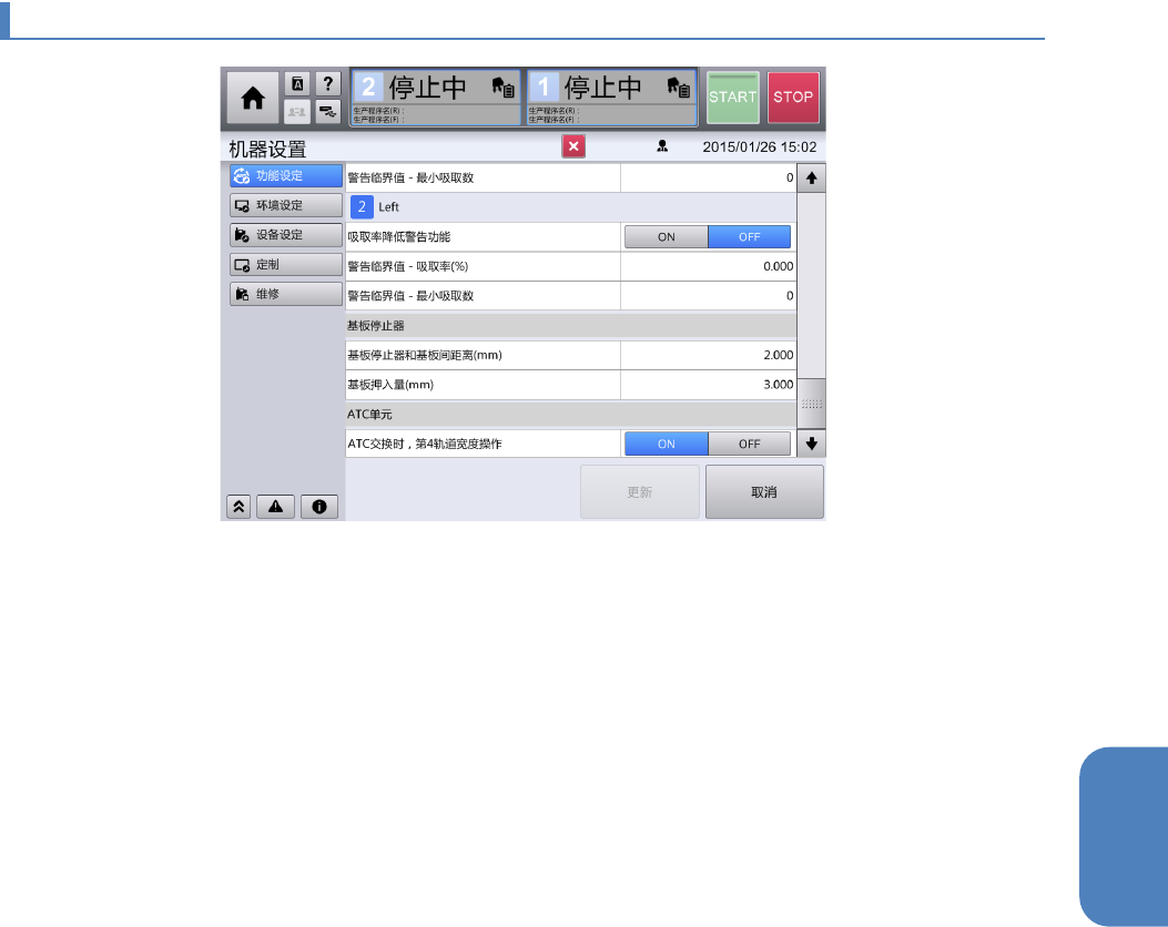 设定为 ON 后,更换高速贴片头的 ATC 单元时,可使 ATC 单元递送到近前。