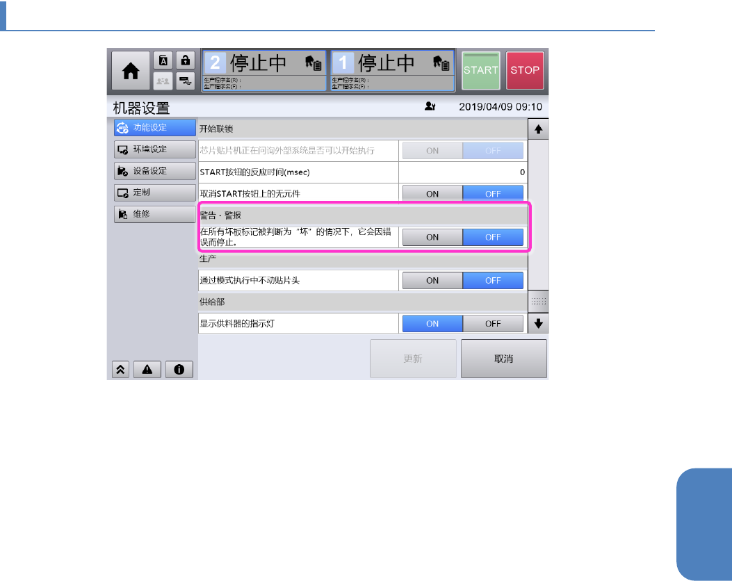 为[OFF]时,即使检测到坏板标记,也不执行错误停止。(初始值:[ON])