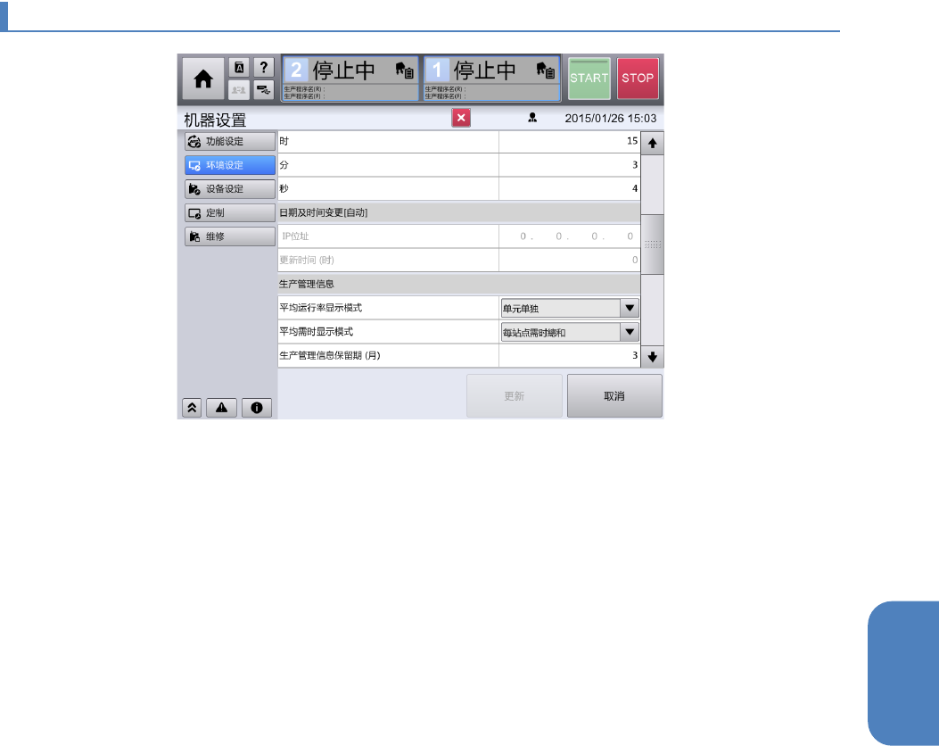 当按下[更新]按钮时,即可确定。(初始值: 当前设定的日期时间) 。