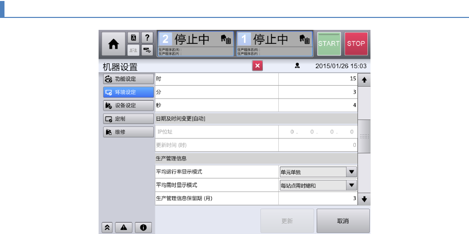 以月为单位指定在本机中保存生产管理信息的期限。超过保存期限的以往的生产信息将被自动删除。