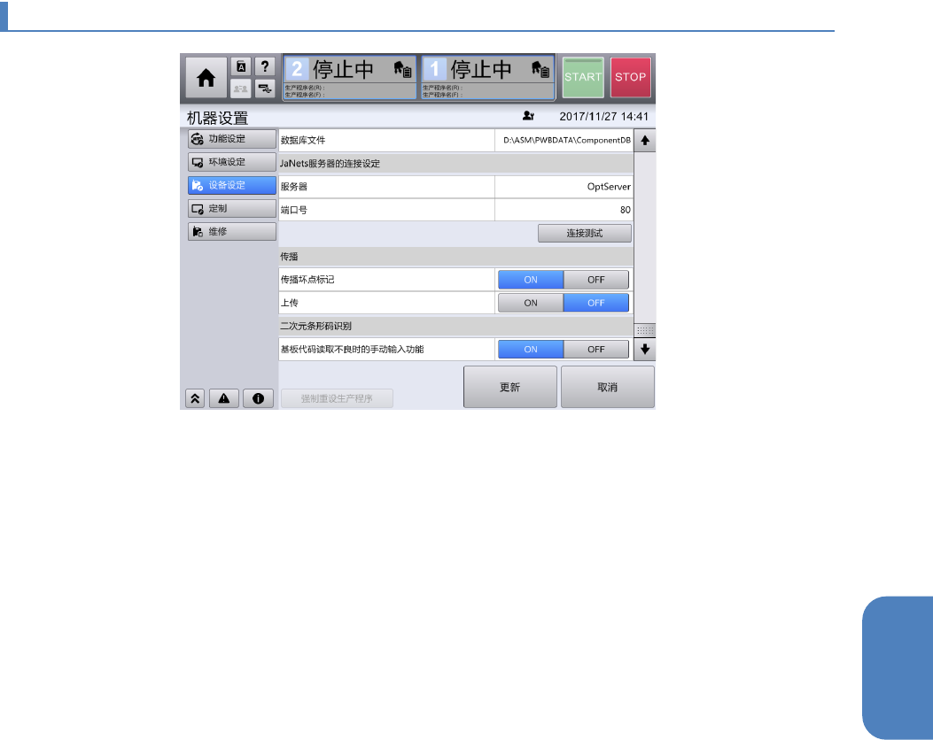 当[传播坏点标记] 设定为 [ON]时,可以设定 [基板代码读取不良时的手动输入功能]。