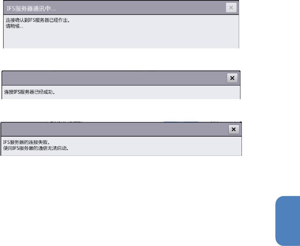 由于超时错误等连接 IFS 服务器失败时,将显示以下对话框。如果 60 秒未完成连接处理则超时。