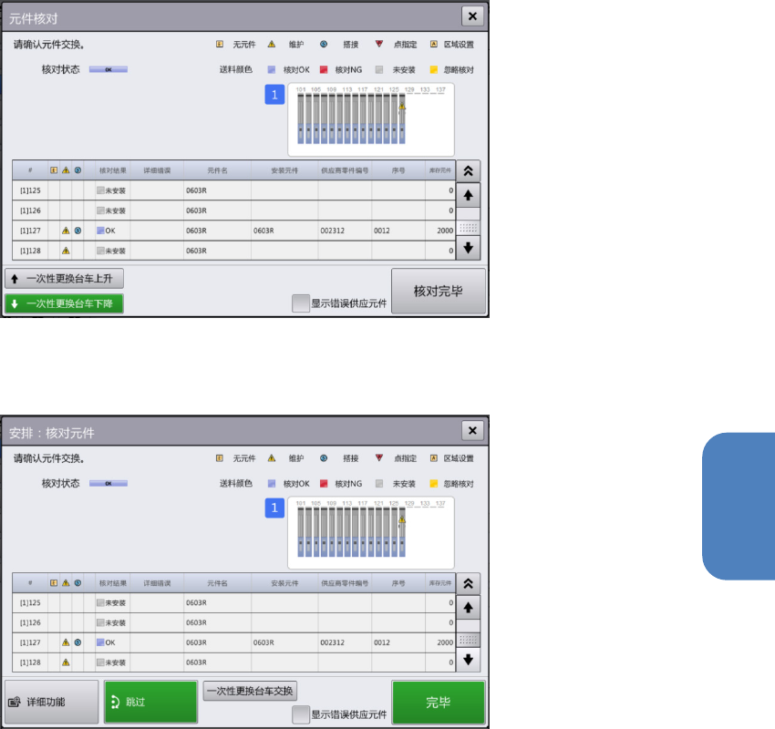 • [安排] – [供料器设置] 画面 – [元件核对] 对话框