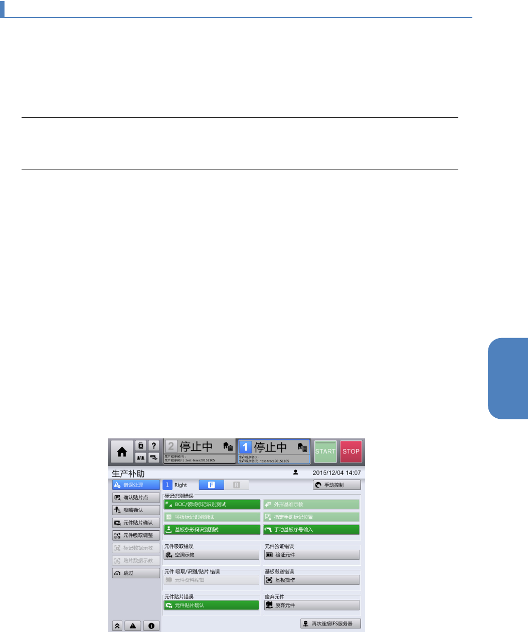 即显示 [顶部菜单] – [生产补助] – [错误处理] 画面,可对基板代码或电路代码的识别错误实施以下处理。