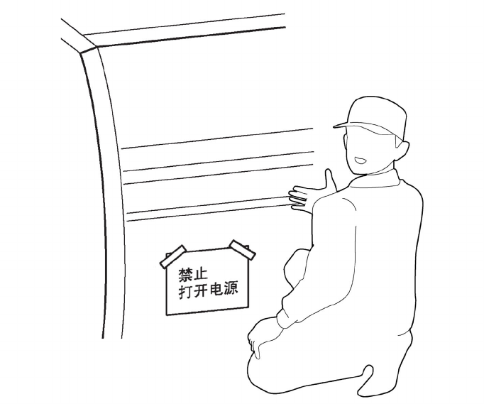 检查中在未接通电源的状态下作业时,请在电源开关前放置注意标示后,进行检查作业。