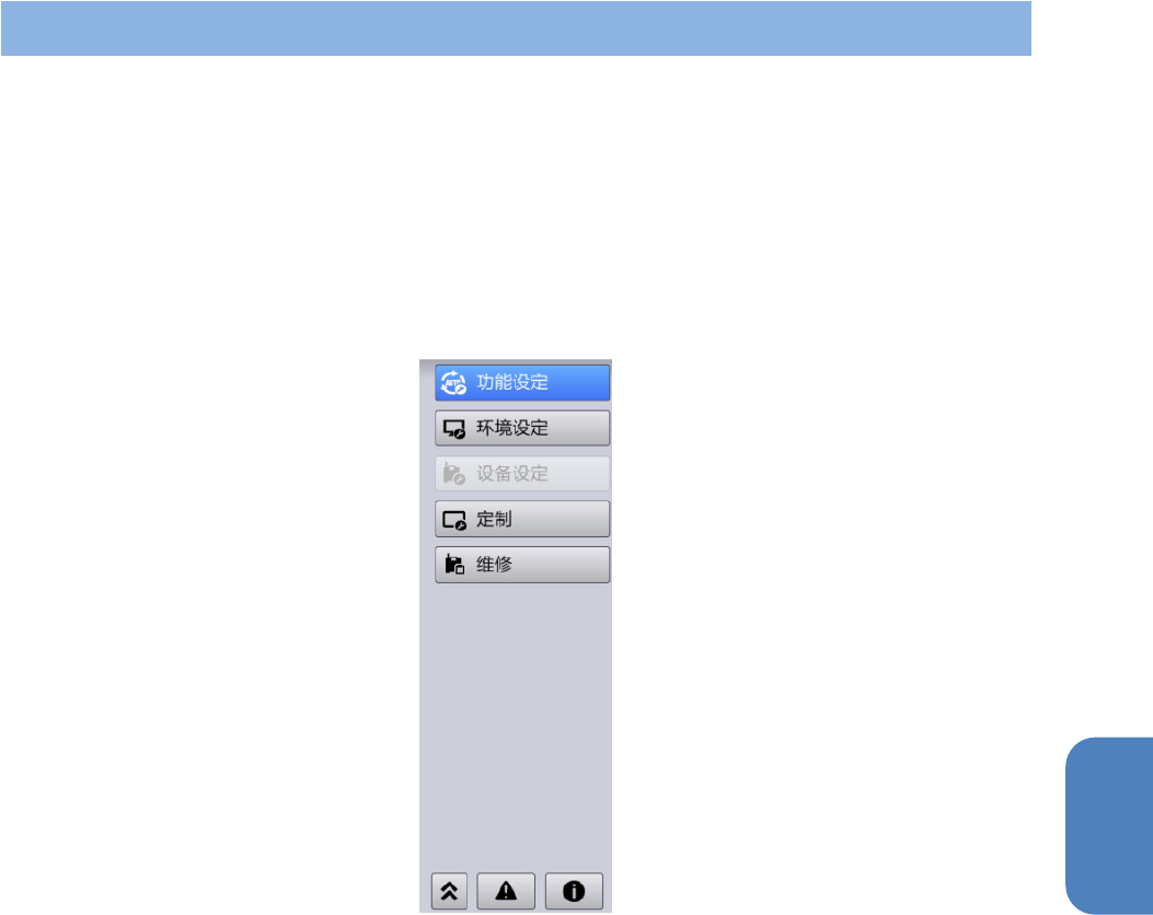 [机器设置]菜单的[功能设定]菜单,当用户级别为[SUPERVISOR]或[MAINTENANCE]时会显示出来。