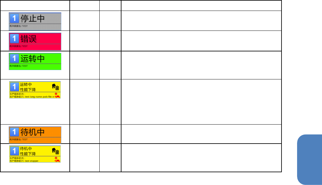 待机中 黄色 在吸嘴不足的状态下运转等,装置无法发挥 100%性能