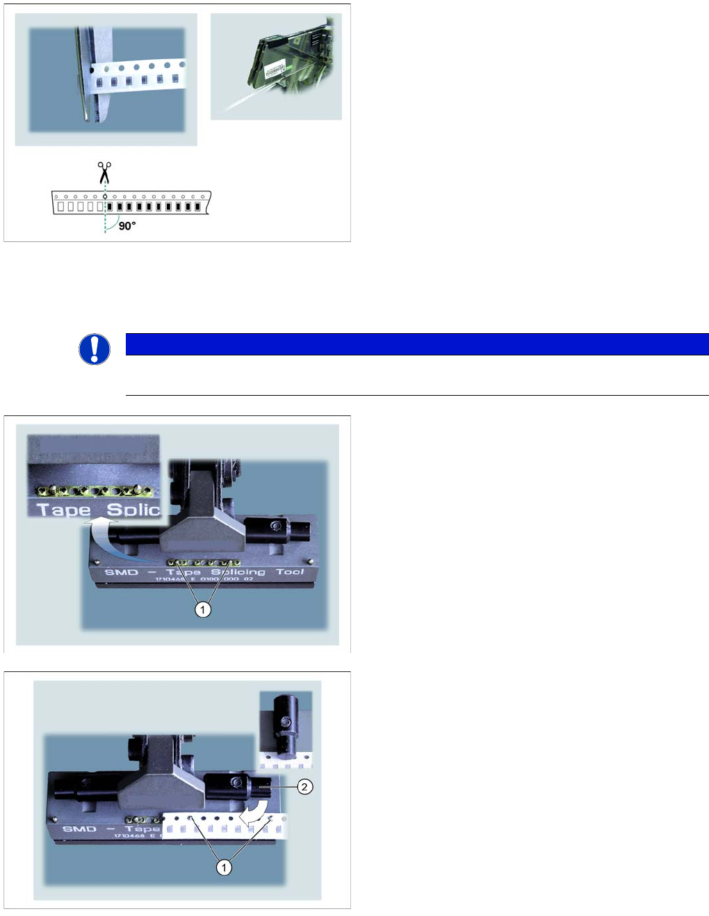 Accessories Tape Splicing Tool for SMD Tape Connections Connecting the Tapes 100 User Manual X Feeder Modules SIPLACE Family 6.4.6.2 Joining Tapes We advise that y ou practise sp licing with various different tap e types…