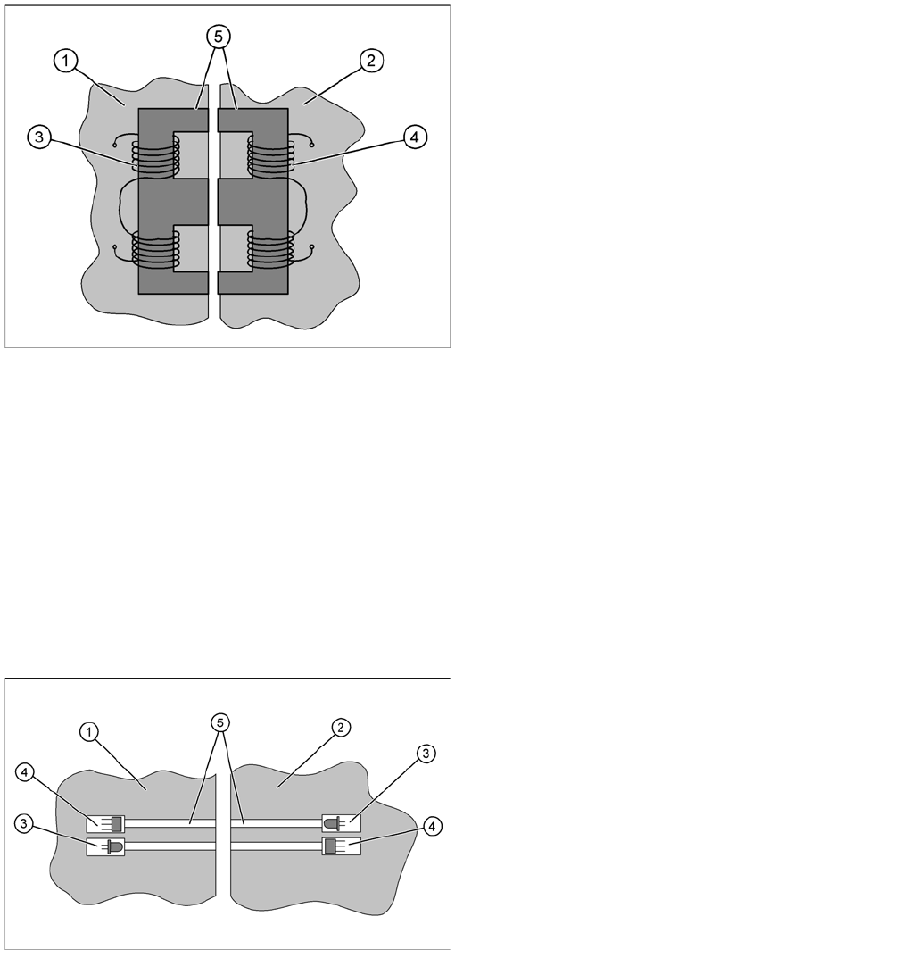 transformer core, which then generates a.c. voltage on the feeder module side. This power is used to