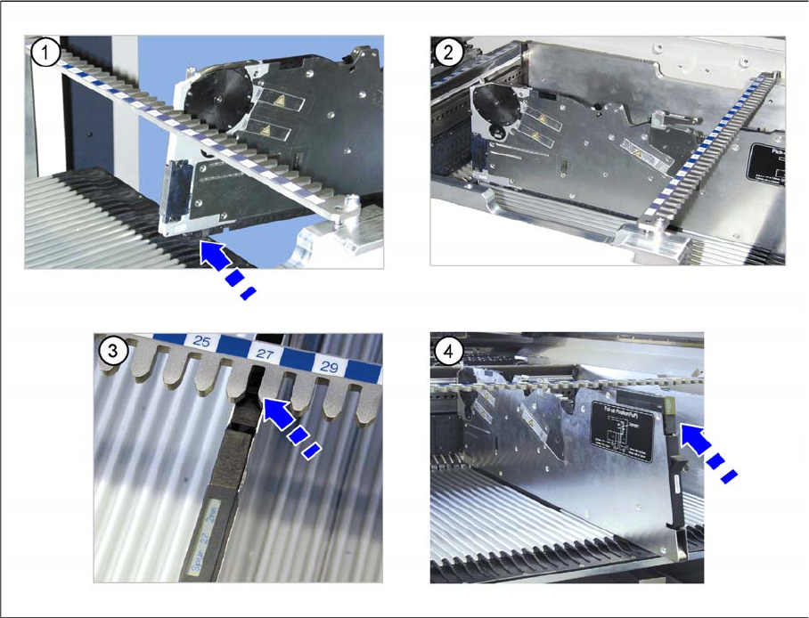 Operating Tape Feeder Modules Inserting the Feeder Module into the Co mponent Table 46 User Manual X Feeder Modules SIPLACE Family ► (1) Place the feede r module wit h t he front sliding guide onto the O mega profile o f…