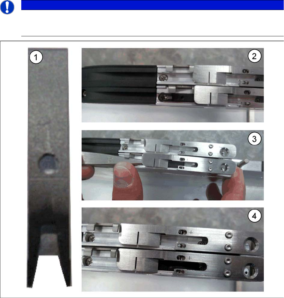 ►(3) Make sure that the rear centering pin stands in the correct recess of the rear centering bar that