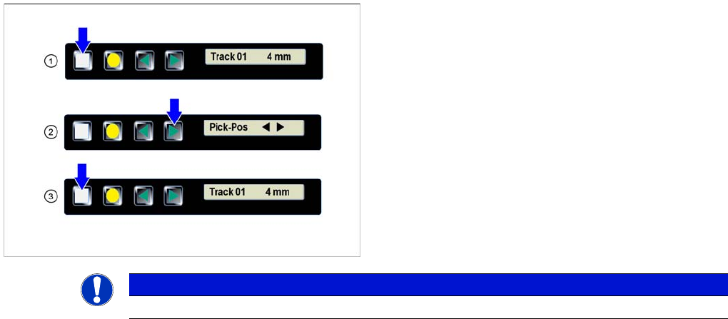 Operating Tape Feeder Modules Using the Operator Panel Adjusting the Pickup Positions 68 User Manual X Feeder Modules SIPLACE Family 4.3.2.3 Pick-Up Positions for 12 mm X Feeder Modules Three dif ferent pickup positions …