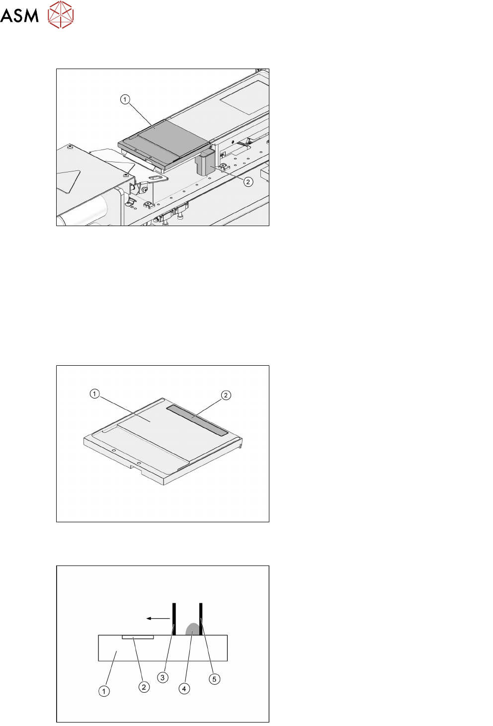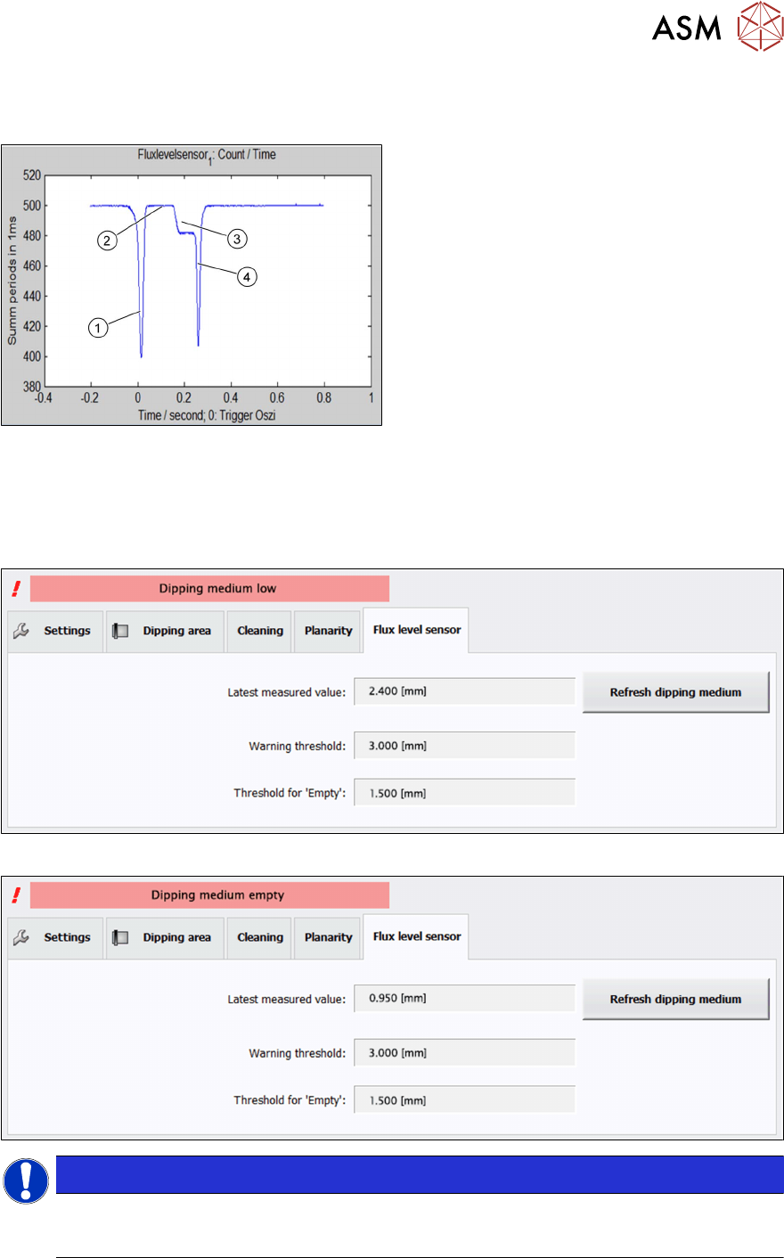 3 功能描述和结构 3.2 结构 28 用户手册 SIPLACE Linear Dipping Unit 2 X 05/2020 3.2.3 挡板和承滴盘 1. 挡板 2. 承滴盘 挡板由永磁体固定到位。承滴盘形状不对称,不能装错。底座上的两个传感器可以判断是否已安装 挡板或承滴盘。 3.2.4 焊剂厚度传感器 生产期间,焊剂罐中的焊剂量会逐渐变少。如果因焊剂量太少而无法加注浸渍板中的空腔,则不能 再为元件涂覆所需的焊剂量。为了避免出现…
