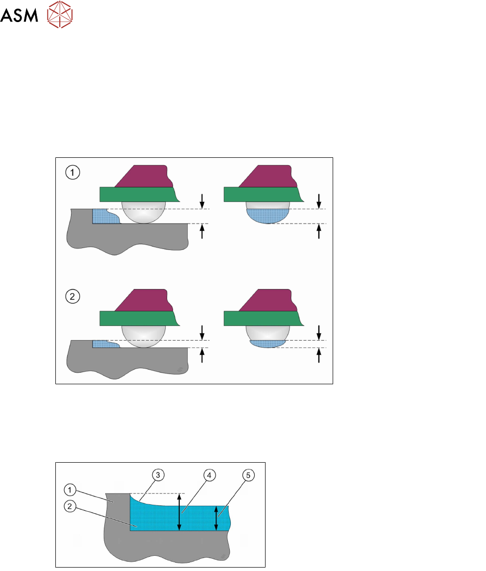 多次测量会得出表示焊剂层厚度减少的值。该值显示焊剂层厚度约为空腔深度的 2/3,即层厚减少约