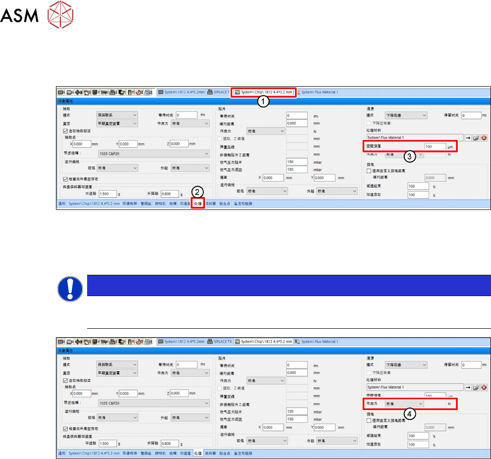 ► 在 SIPLACE Pro 中,单击相关焊剂的选项卡