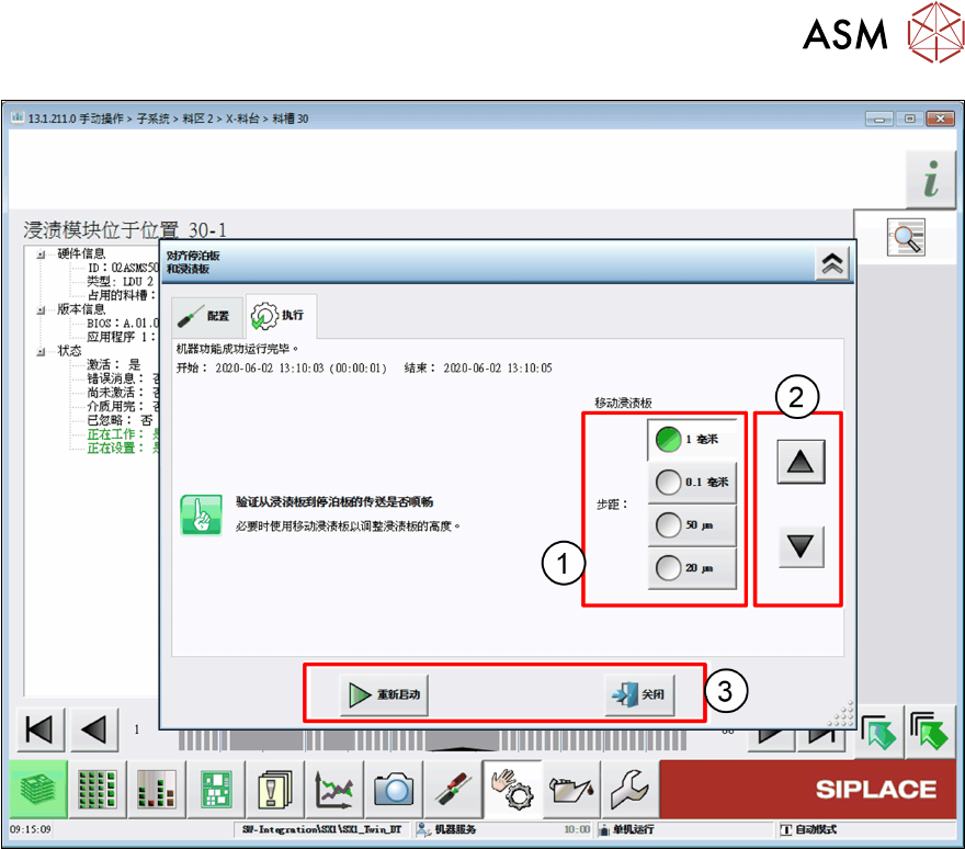 4 操作 4.4 调整空腔深度 70 用户手册 SIPLACE Linear Dipping Unit 2 X 05/2020 4.4 调整空腔深度 提示 目标组:设置操作员 所述操作是一项不定期执行的任务,仅可由经过培训且具有特定专业知识的操作员(设置操 作员)执行。 一旦更换自动空腔浸渍板,必须精确调整由自动空腔浸渍板和 LDU 决定的空腔深度(偏移量)。对 于要使用自动空腔板的各个 LDU,自动空腔板必须与 LDU 对齐。 各个 …