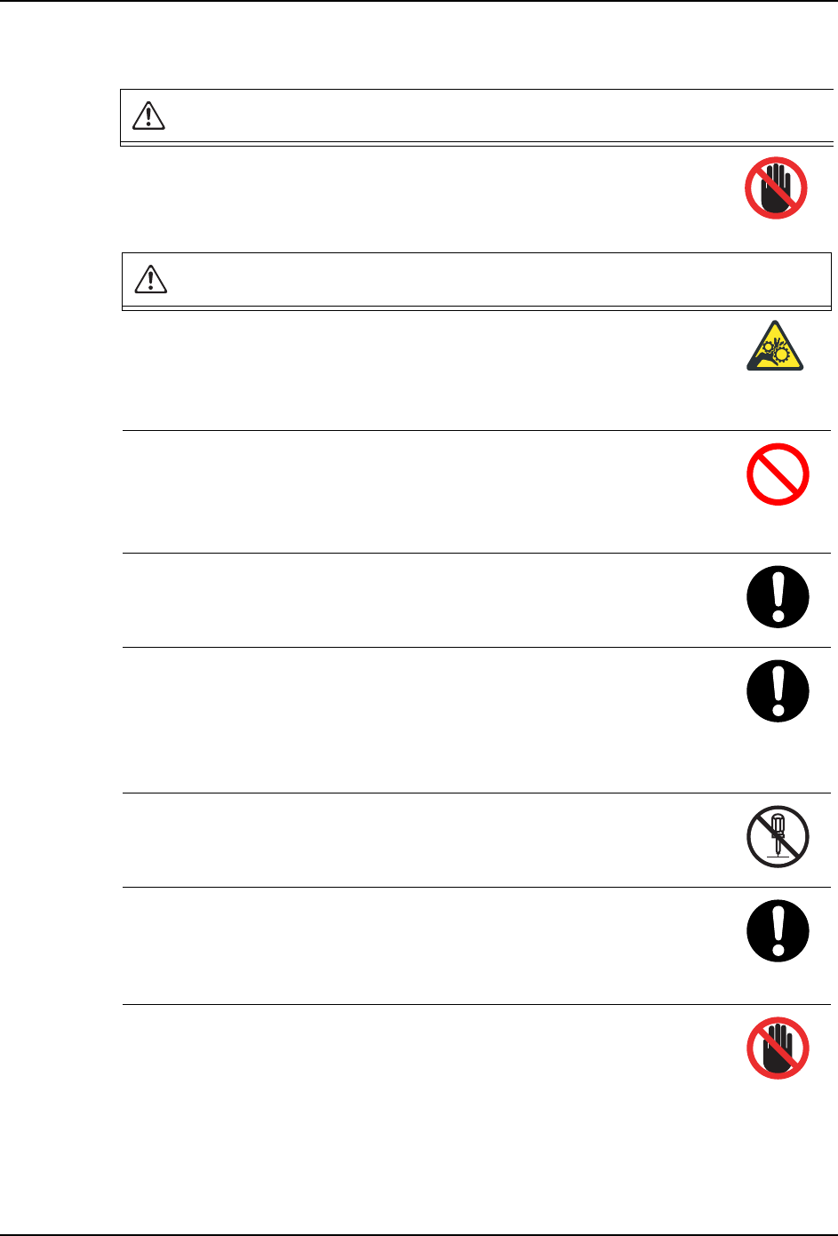 ·如果不使用拉手开闭安全门、防护罩和防护栏,手有可能被挤压而受伤。