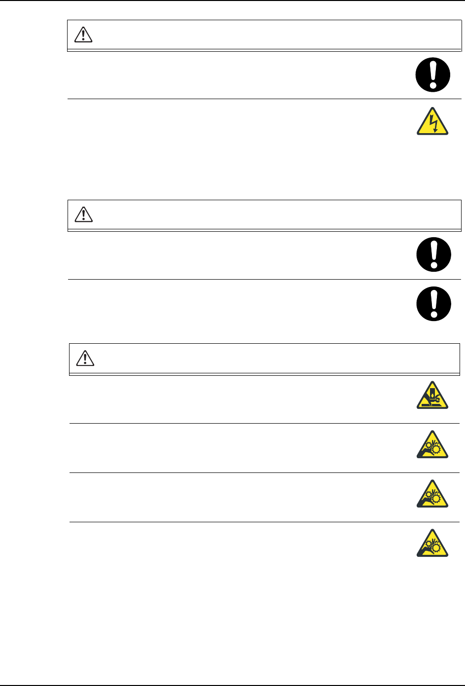 QD139-11 1. 安全指南 NXT II 安装手册 7 请使用心脏起搏器的人员不要靠近 Y 轴的线性马达 (作业时请保持 400 mm 以 上的距离) 。 ·线性马达可以产生强大磁 场。有可能造成心脏起搏器的误动 作,请充分注 意。 请不要分解线性马达。 ·绝对禁止分解线性马达的 轴和线圈部分。内部的磁石会乘势 飞出,导致机 器损伤和人身事故。 在开闭前面、侧面防护罩时,请 注意不要被夹住手指。 ·手指有可能受伤。 不要将手指伸入…