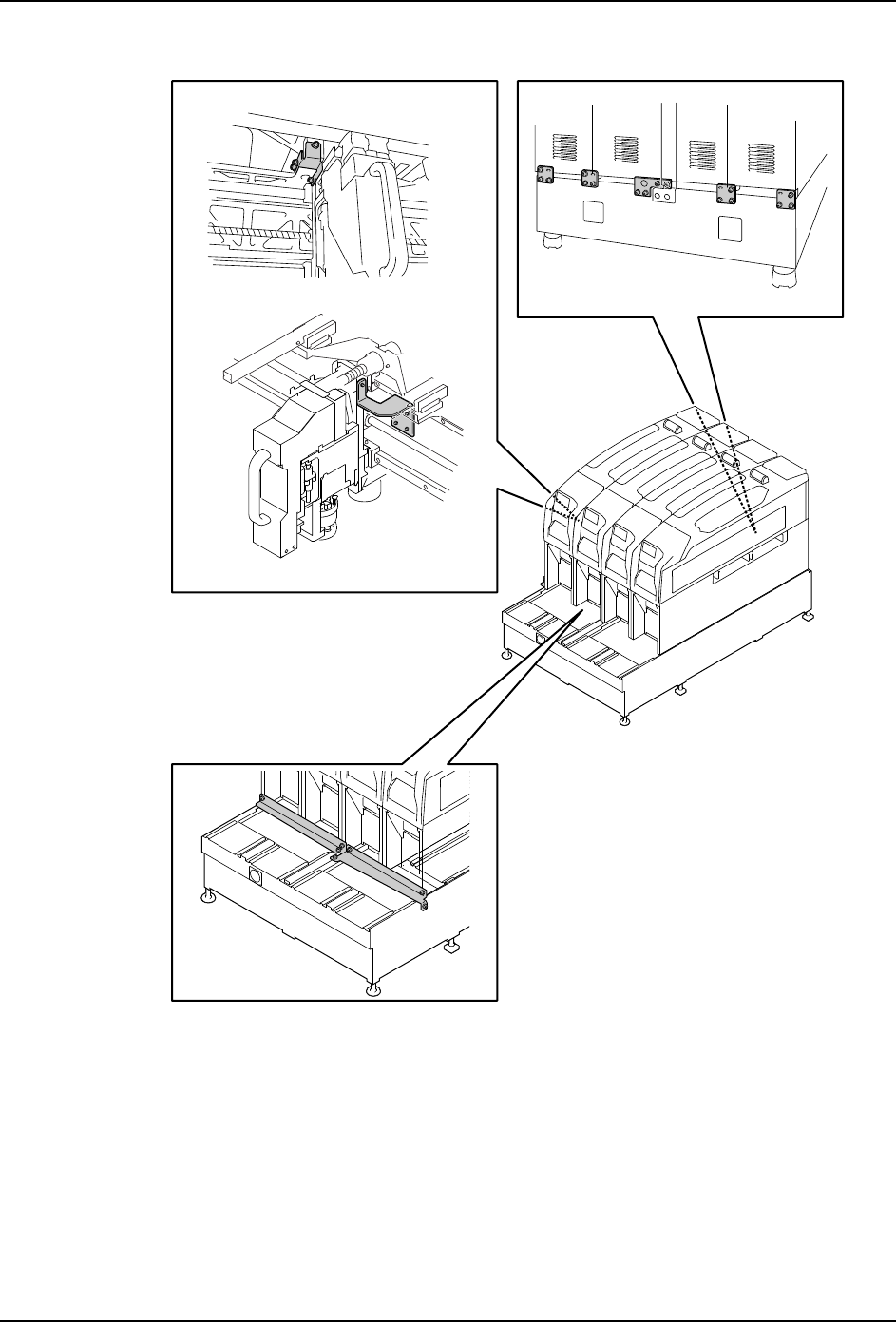 注意 )拆卸固定支架时,请同时取下机器内外侧的保护材料。进行操作前,必须确认出厂时