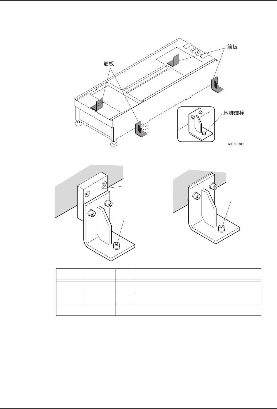 QD139-11 3. 机器的安装 NXT II 安装手册 33 3.3.2 基座的固定< 2M-2 单独使用时> 进行调整水平后,请按照下记的 要领,将 2M-2 基座固定到设置位置的地面上。 图号 名称 个数 备注 PB18723 筋板 4 PB21792 垫块 4 电路板搬运高 度为 912 ~ 965mm 时使用垫块。 H5123B 地脚螺栓 4 9-6-5-M 10(Cut Anchor) ൿഫ H = 912 㨪 mm…