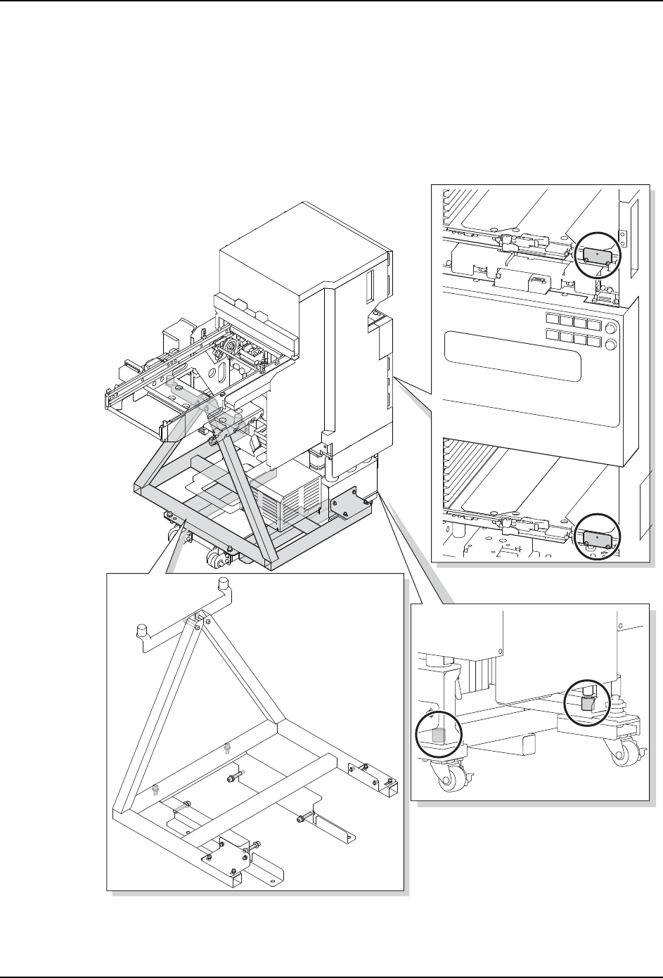 QD139-11 3. 机器的安装 NXT II 安装手册 59 8. 向右拧紧锁定旋钮。 9. 旋转折叠式手柄,通过调节料盘单元 -L 的高度来调整 Y 轴方向上的水平度。 注意 )由于料盘单元 -L 处于被机器夹紧的状态, 大幅度调整高度可能使连接销损坏。 请慢慢 小心的进行调整。 10.拧紧左右的锁定杆 。 11.锁定左右的脚轮。 ᡬᓣᶘ 㛮䕂 << 1;7078D