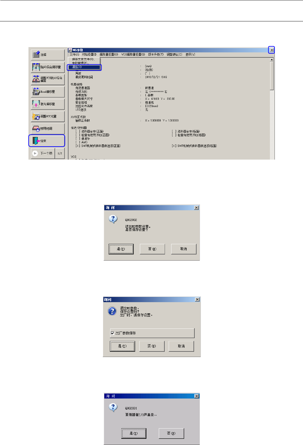 ⑥ 要结束MS参数时,请选择初始画面右上方的“×”、指令按钮中的“结束”、主菜单的“文