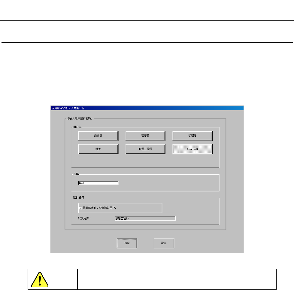 请在主机主菜单画面上选择选项”-“变更用户组,变 修理工程师JUKI的用户