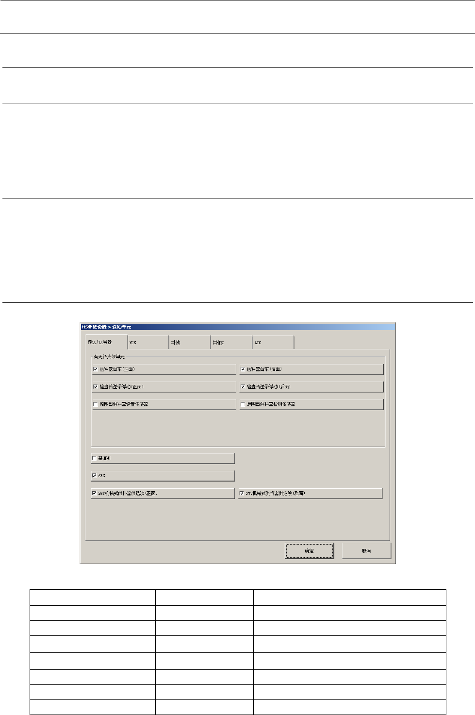 选项分为“传送/送料器”、“VCS”、“其他”等项目,可分别进行各自的选项设定。