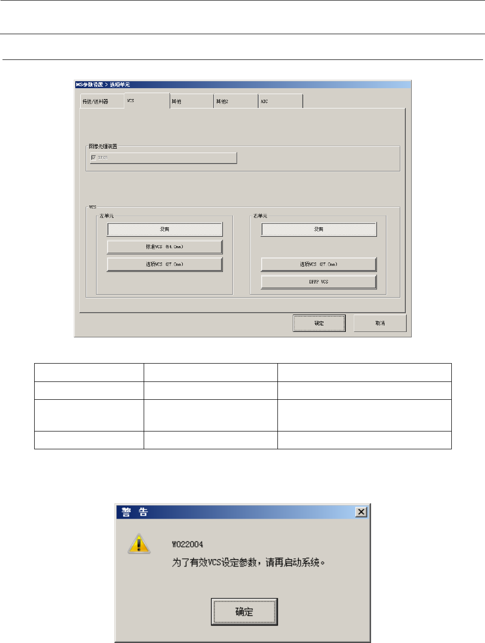 VCS(右单元) 没有/选项VCS/DFFP VCS 左单元/右单元分别选择不同的VCS