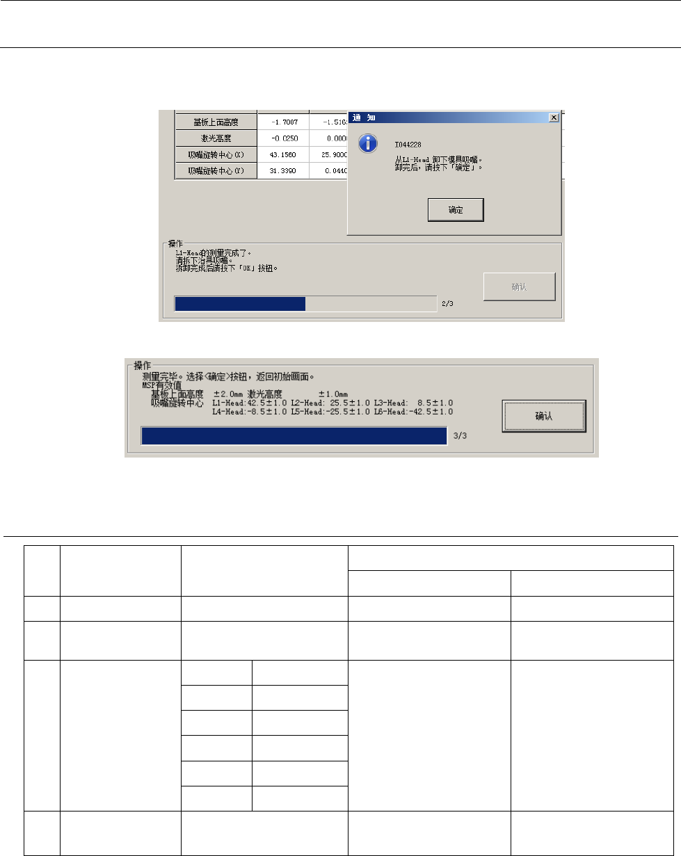 测定完成后,将显示以下的对话框信息。贴装头会当场下降到吸嘴卸下位置的高度,请