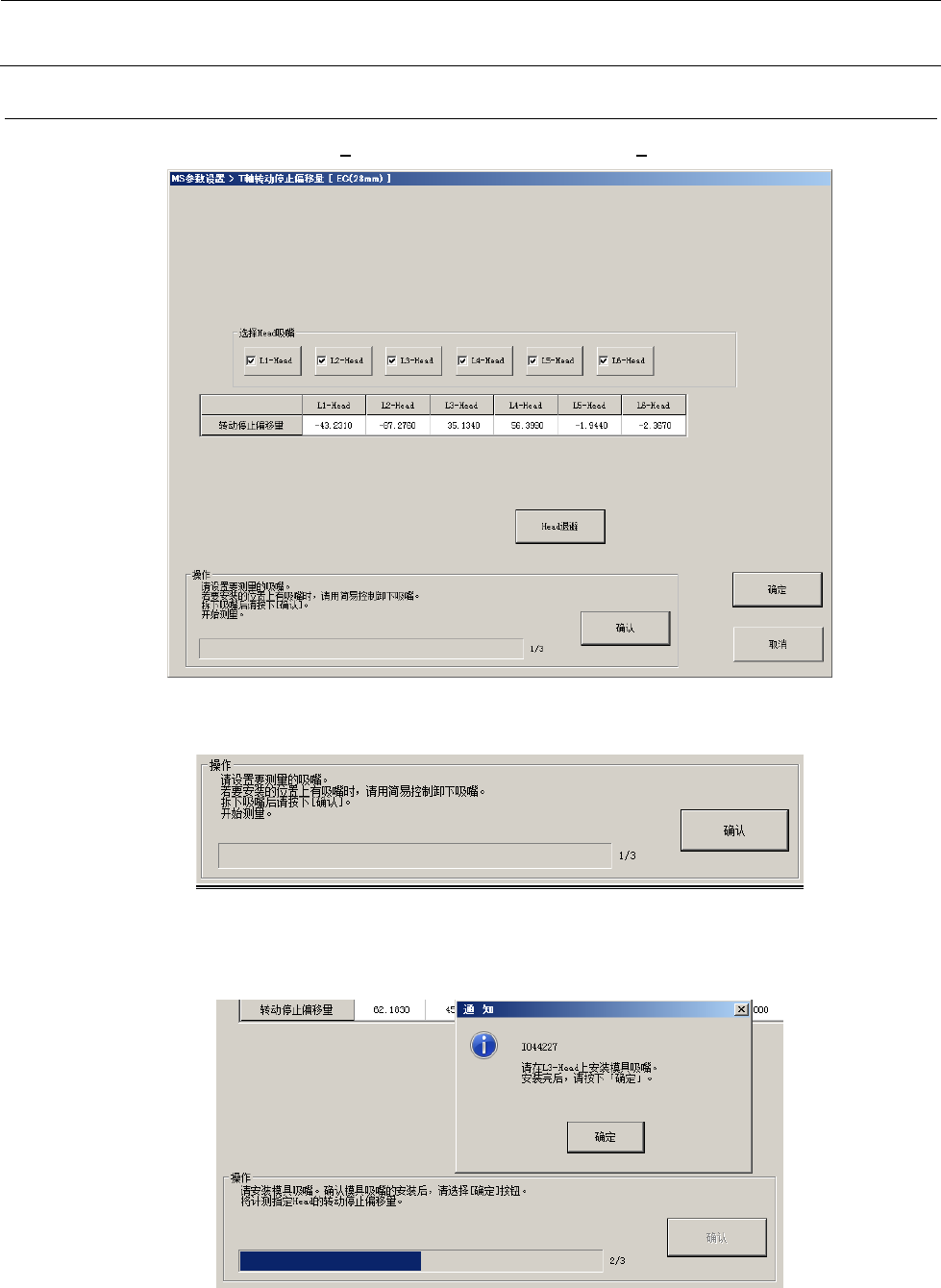“确定”按钮被按下后,转移到下一个贴装头的测量。